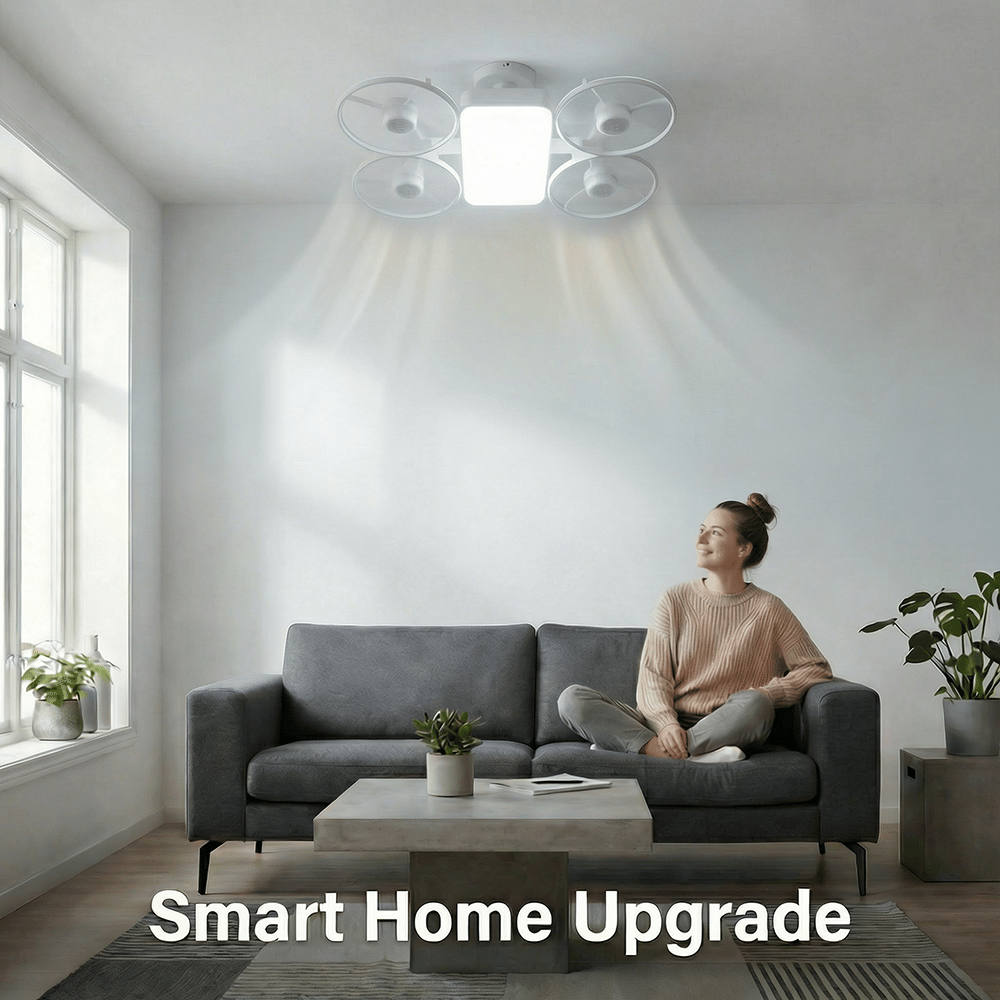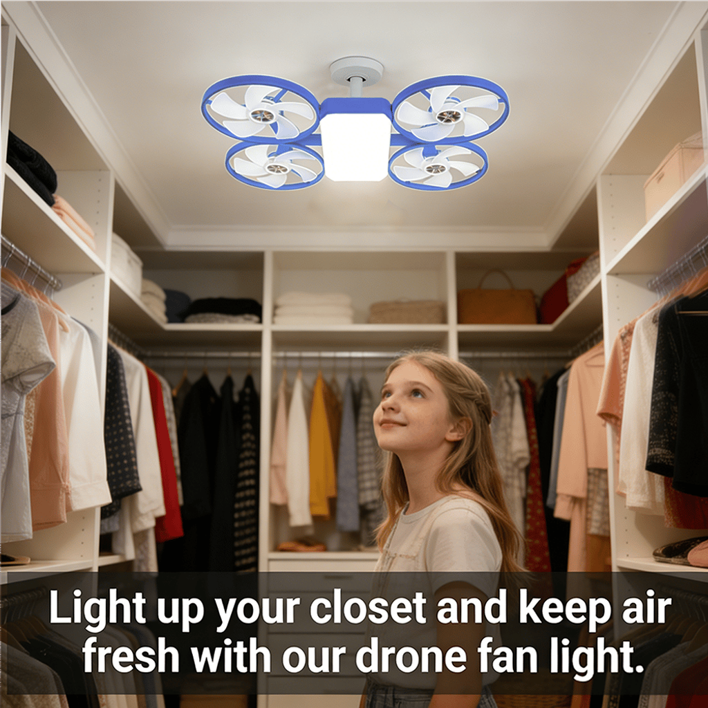 Upgrade your living space with this innovative drone-shaped LED ceiling fan light. Combining modern lighting with refreshing airflow, this multifunctional fixture brightens your room while helping circulate air for a more comfortable environment.
