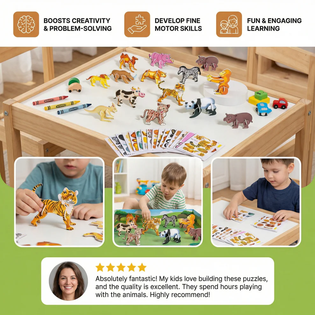 - 🎨 Strengthens creativity & fine motor skills: Assembling the 3D pieces trains little hands and sparks imagination.