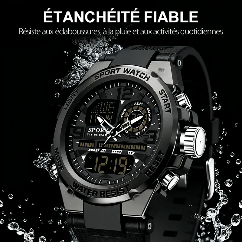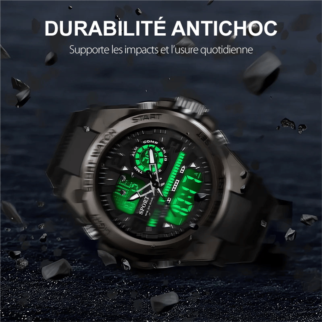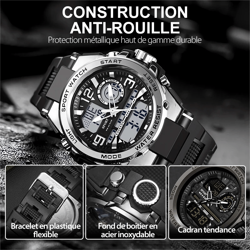 坚固耐用的防震结构——采用坚固的表壳设计,可承受意外跌落和冲击。这款腕表是运动和户外探险的可靠伙伴,确保在恶劣环境下也能精准走时。